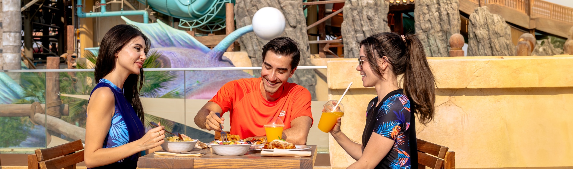 استمتعوا بتجربة المطعم الداخلي الوحيد حيث تلتقي الأطباق الشهية مع الإطلالات الخلابة. واستمتعوا بالبيتزا المحضرة يدويًا، والباستا الطازجة، والسلطات الصحية، والأطباق الغنية بالنكهات في أجواء المطعم الداخلية المريحة، أو على الشرفة الحصرية المطلة على مغامرات المدينة المائية.