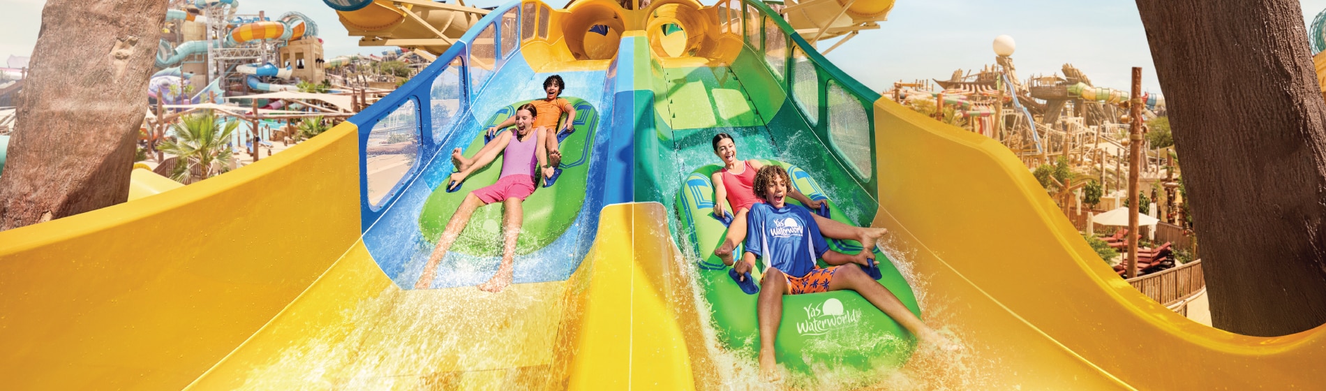 Enjoy a full day of thrills, splashes, and family fun at Yas Waterworld.